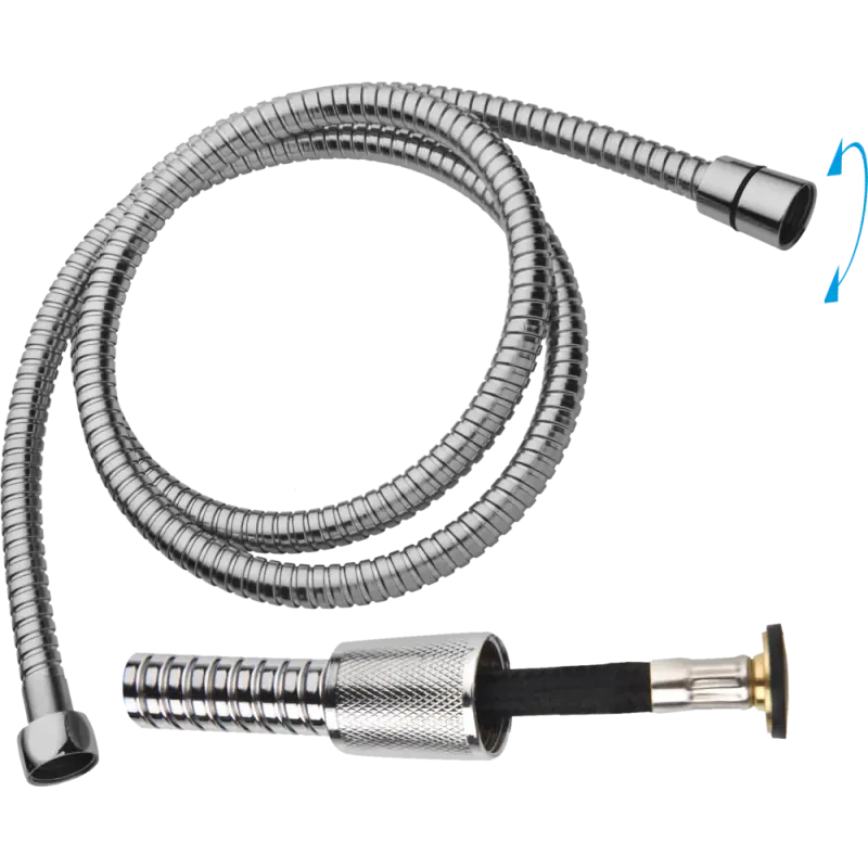 Hadice je vybavena otočnou koncovkou (anti‑twist), která zabraňuje překroucení během sprchování. Tím zajišťuje plynulý pohyb, pohodlné používání a prodlužuje životnost celého spoje. Nerezové provedení působí moderně a snadno ladí s většinou sprchových baterií.